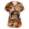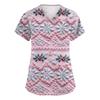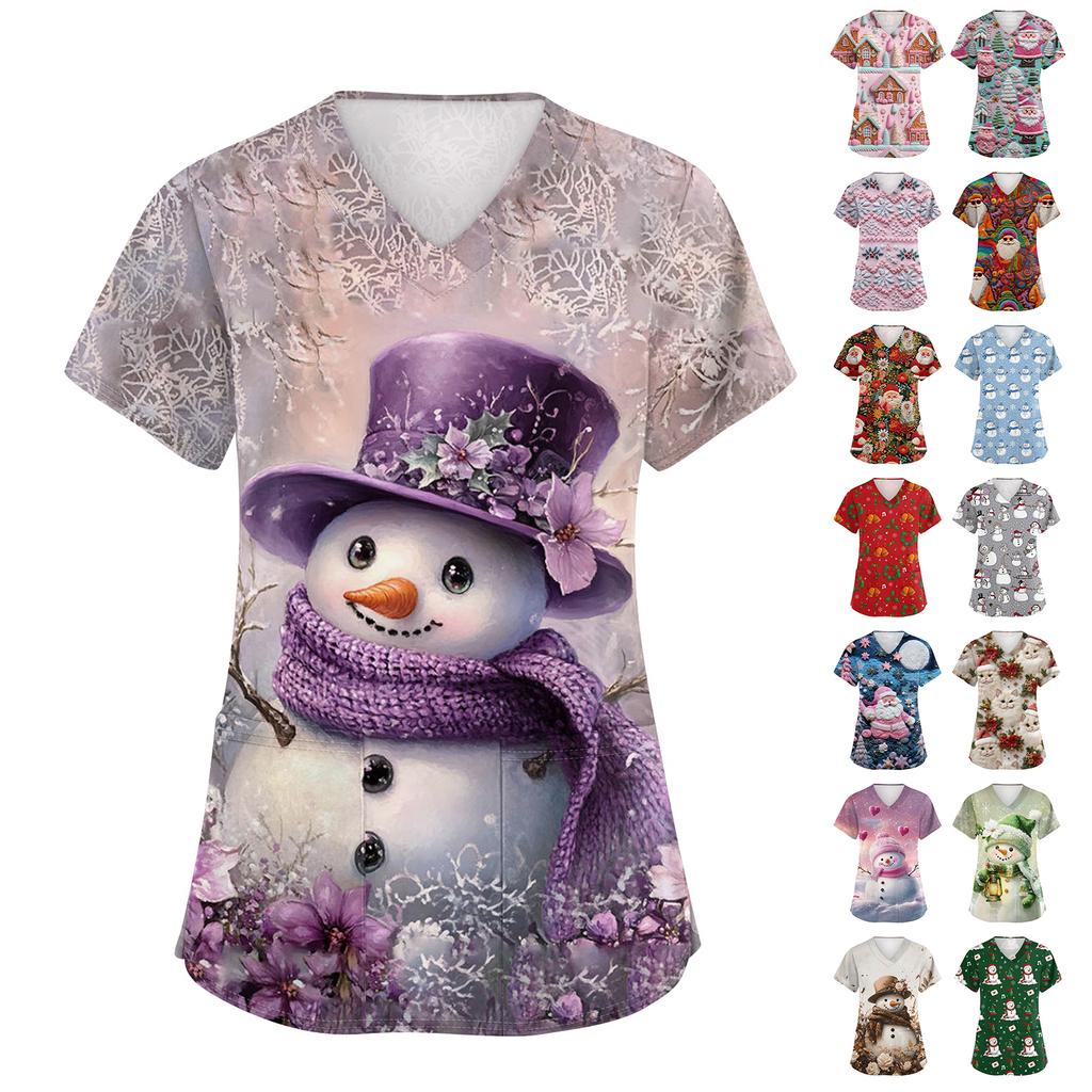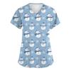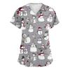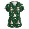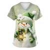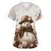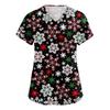 Women's V-neck Christmas Printed Short-sleeved Pocket Side-slit Protective Suit Top