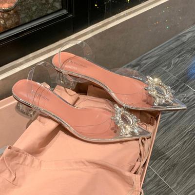 Summer New Sunflower Crystal Heel Pointed Head Bag Head High Heel Sandals Women's Transparent Rhinestone Hollow Women's Shoes