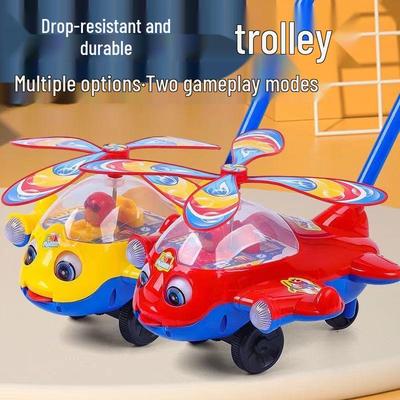 Cartoon Airplane Toy Trolley Educational Helicopter Hand Pushing for Toddler