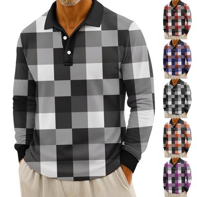 Men's Casual Loose Colorblock Print Lapel Button Long Sleeve Top