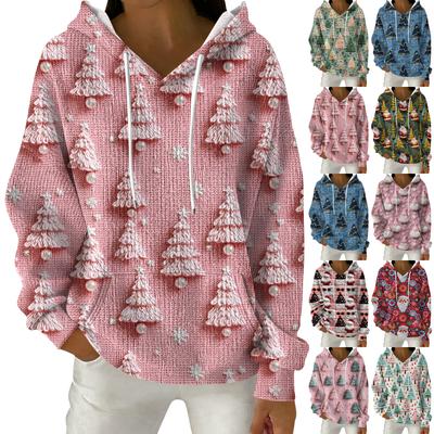 Women's Casual Fashion Christmas Print Long Sleeve Pullover Hoodies Sweatshirts