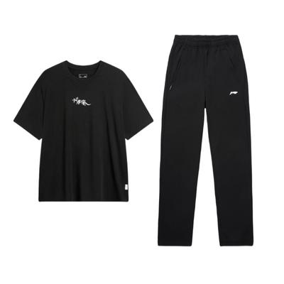 Fila Heritage Pullover Round Neck Knitted Short Sleeve T-Shirt Fashion Simple Long Pants Casual Set Women Sets F11W538113F-BK+F11W538806F-BN