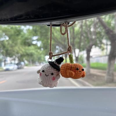 Halloween Crochet Pumpkin And Ghost Car Pendant Handmade Mini Knitted Ghost Pumpkin Hanging Ornament for Car Rear View Mirror Interior Accessories