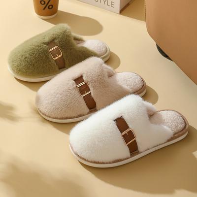 Cotton Slippers Home Autumn and Winter Cotton Drag Buckle Plush Thickened Warm Cotton Shoes Non-slip Wool Slippers Couple Shoes