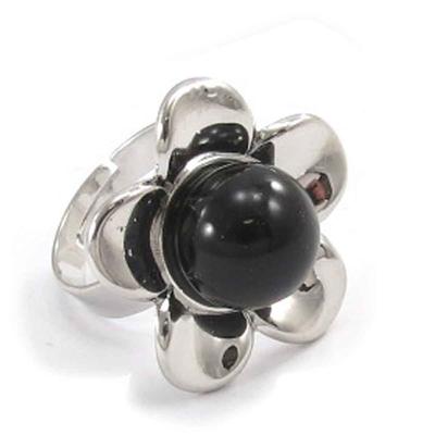 [J8035] - Designer Ring 'Flora' Black Silver