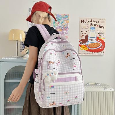 New High-value, Fresh and Sweet Plaid Cute Cartoon Backpack, Lightweight Backpack for Junior High School Students