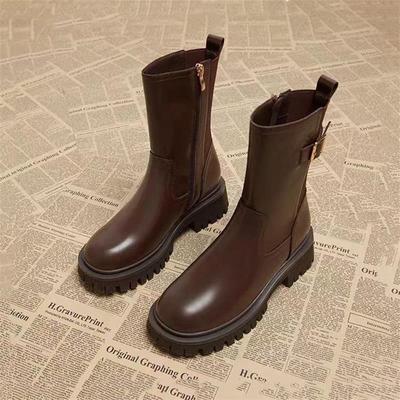 Scrub Leather Women's Inside Heightening Short Boots Platform Chelsea Booties Plus Fleece Warmth Ankle Boots Botas De Mujer