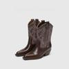 2025 Spring and Fall Fashion Pointy Solid Color Women's Mid-calf Boots with Mid-heel Sleeves Embroidered Western Cowboy Boots