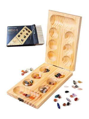 Mancala Board for Kalaha Board Folding Wooden Glass Mancala Stones Board Mancala Strategy Game for Family Adults Kids, Game, Board, Set, Game, Kalaha,