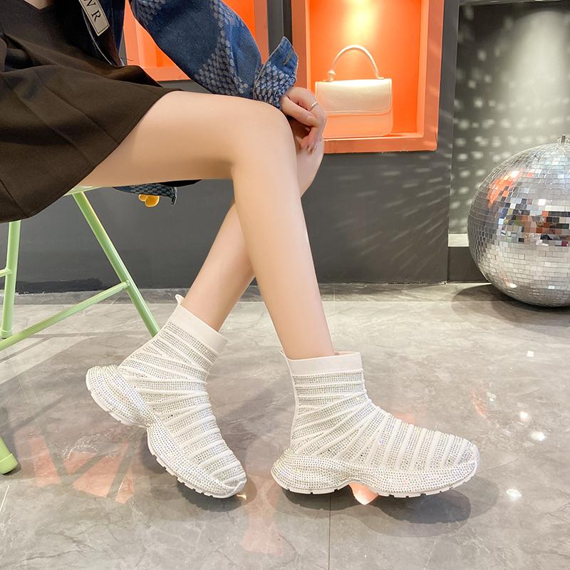 Fashion Luxury Thick Bottom Full Diamond Knitted Boots Fashionable Women's Designer Bare Boots High Quality Anti Slip Women's Sneakers