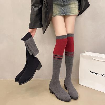 Autumn and Winter New Large-size Fashion Boots Thick-soled Thin Boots Socks Boots Over the Knee Elastic Boots Women