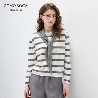 Komunboca Women's Lyocell Tencel Striped Long-Sleeve Knit Top
