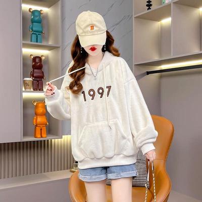 Hooded Sweater Women's Autumn and Winter Fleece Thickened Loose Lazy Style Versatile Top Jacket