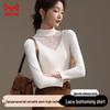 Mao Ren French Elegant Lace Mesh Semi-High Collar Long Sleeve Top