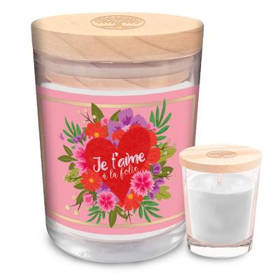 [A3729] - Pink 'Je t'Aime À La Folie' Scented Candle - 92x70 Mm