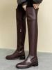 2025 Korean Version Shows Legs Thin Over the Knee Long Boots Women's Low Heel Widens Leg Circumference Winter Thin Velvet Tall Knight Boots Brown
