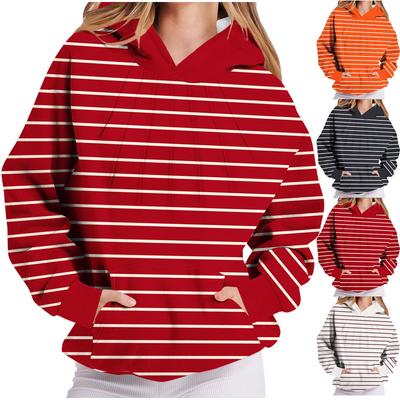 Elegant and Fashionable Fall and Winter Comfortable Drawstring Hooded Striped Long Sleeve Sweatshirt Top Pullover Hoodies