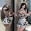 Original Design Women's Cute Cow Lingerie Pajama Set - Polyester, Lace-Up, Sexy, and Playful Cow Uniform Style