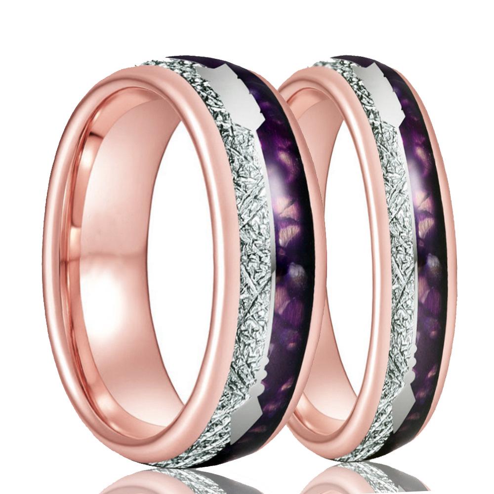 2025 Luxury 6mm/8mm Tungsten Ring with 18K Rose Gold, Meteorite, and Natural Purple Agate Inlay