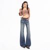 These slimming dark blue-gray micro-flared jeans are designed for tall women who appreciate style and versatility. Crafted from premium denim, they offer a flattering fit that enhances the silhouette while ensuring comfort and durability. The subtle pattern adds a modern touch, making these jeans a perfect choice for both casual and dressier occasions during the autumn and winter seasons.