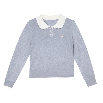 Autumn Ladies Knitwear Pullover Sweater Lapel Shirt Collar Long Sleeve Knitwear