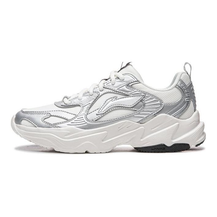Li-Ning Synthetic Leather Comfortable Trendy Fashion Shock Absorbing Wear Resistant Low Top Casual Shoes Kids Sneaker White Silver AGLV174-2