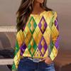 Women's Fashion Casual Slit Hem Round Neck Long Sleeve Loose Printed T-Shirt Top