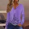 Women's Fashion Casual Floral Print V Neck Long Sleeved Button Up T Shirt Top Long Sleeved Top