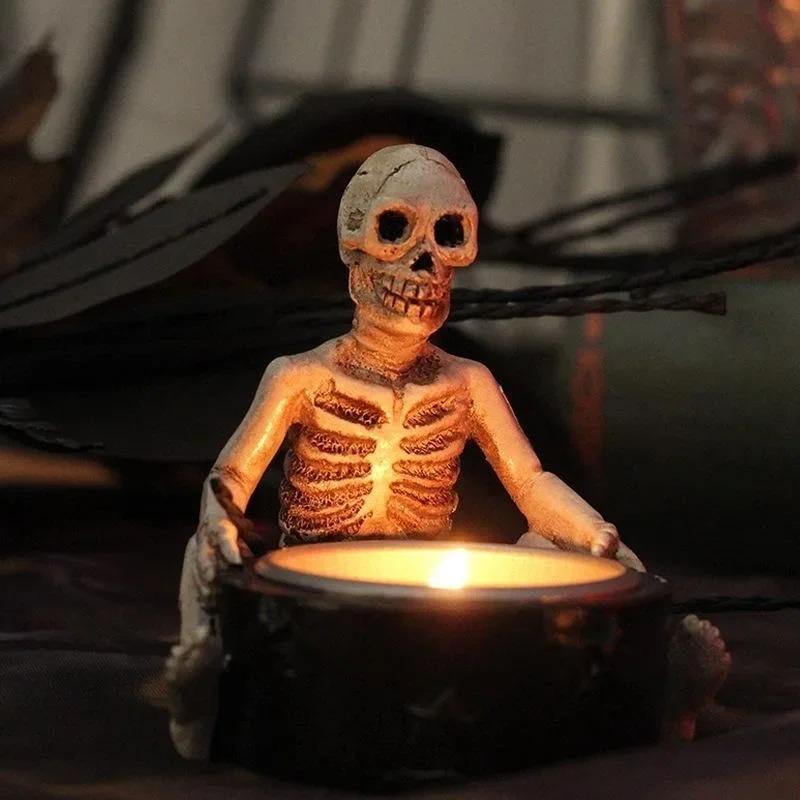 Durable Resin Skull Candle Holder Vintage Skeleton Candlestick Tea Light Cup For Home Party Decoration Home Halloween PartyDecor