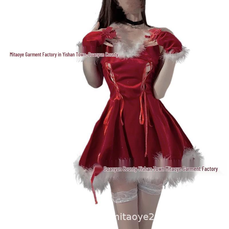 Passionate Christmas Bunny Girl Costume: Sexy Strappy Lingerie with Fluffy Sling for New Year