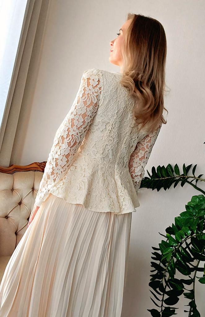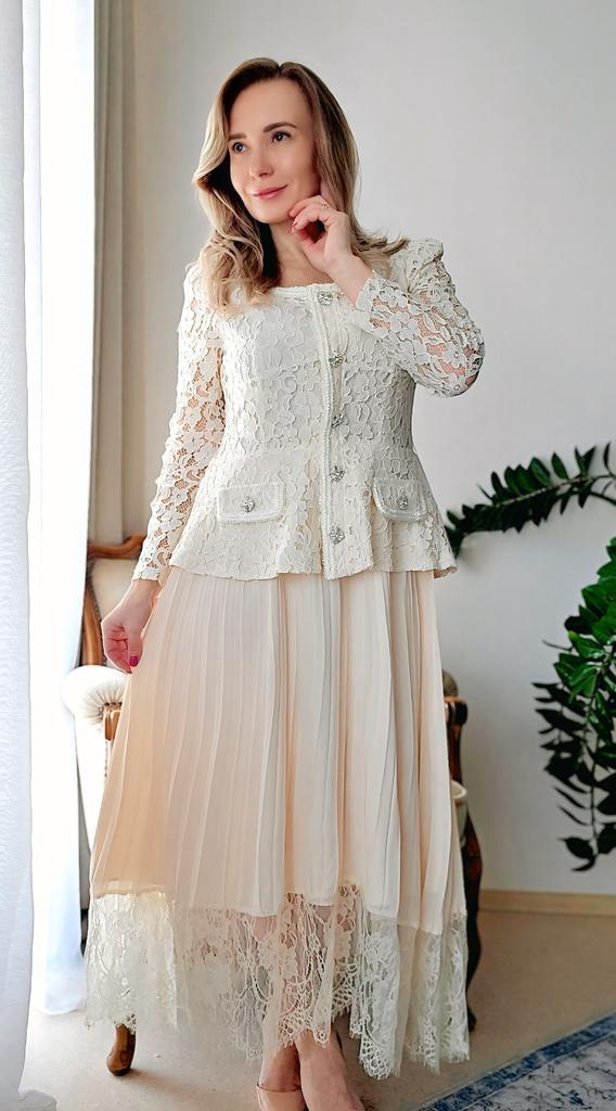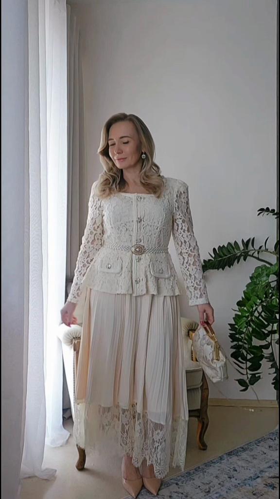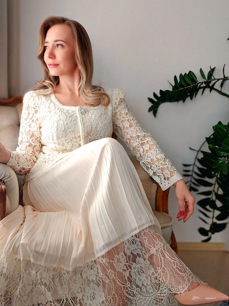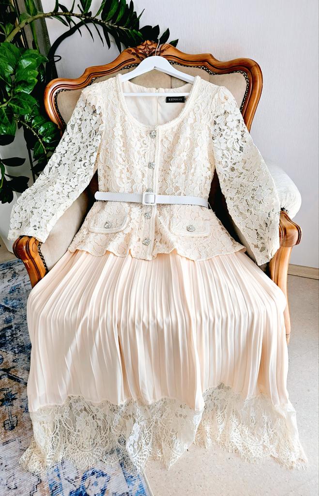 High End Dress for Women In Autumn French Fashion Lace Long Sleeved Patchwork Waist Cinching Pleated Long Dress