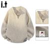CHOCOOLATEit Unisex Japanese Style Loose Fit Henley Wool Blend Knit Sweater