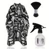 3pcs Professional Haircut Set Barber Cape Neck Duster Brush Polyester Apron with Spray Bottle Haircut Styling Accessories
