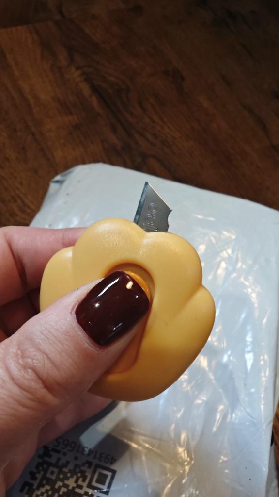 one of those impulse purchases that end up being the most used on the desk. It's the perfect combination between "kawaii" aesthetics and pure functionality for day-to-day use. What I like most is its extreme portability. Being so small and rounded, it fits in any corner of the case or even hung on the keys thanks to its small side hole. The blade is retractable and has a sliding locking system, which gives you a lot of security when using it; it only comes out when you want it to. Although it looks like a toy, the edge is surprisingly precise and resistant, ideal for opening Amazon packages in a second, cutting clothing labels, or doing crafts that require a clean cut.