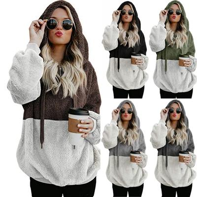 Women's Pullover Women's Color Blocking Hooded Stitched Long Sleeve Zipper Plush Sweatshirts