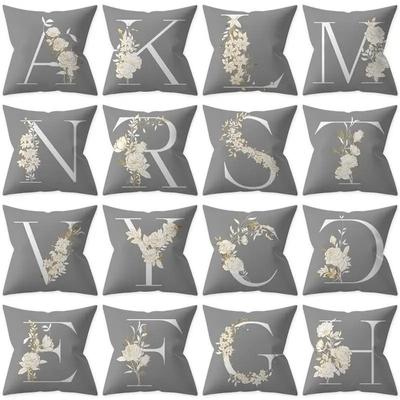 Letter Flower Print Cushion Cover English Alphabet Pillow Case for Sofa Home Decor Fashion Throw Pillowcase Kids Party 45x45cm