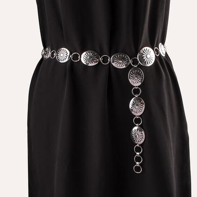 Hook Adjustment Belt Body Oval Metal Waist Chain Ladies Vintage Antique Silver Chain Dress Decorative Belt