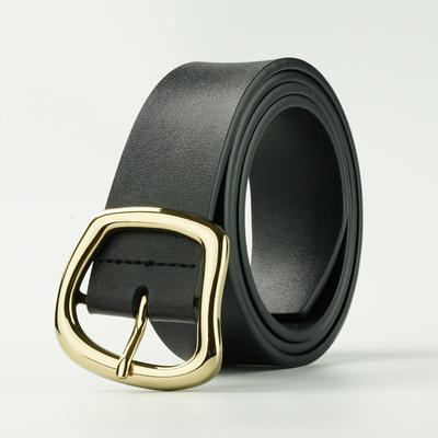 Women'S Rose Gold Square Buckle Day Buckle Black Belt Basic Thick Line Textured Women'S Belt