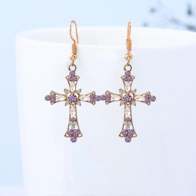 European & American Style Zircon Cross Dangle Earrings - Fashionable New Design