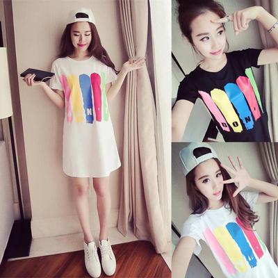 Women's Dress Casual Hip-hop Letter Printing Spring and Summer Short-sleeved T-shirt Dress Women
