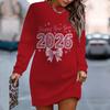 Ladies' Elegant, Fashionable, Trendy and Casual Hoodie,New Year Element Printed Three-dimensional Cut Women's Long Red Hoodie