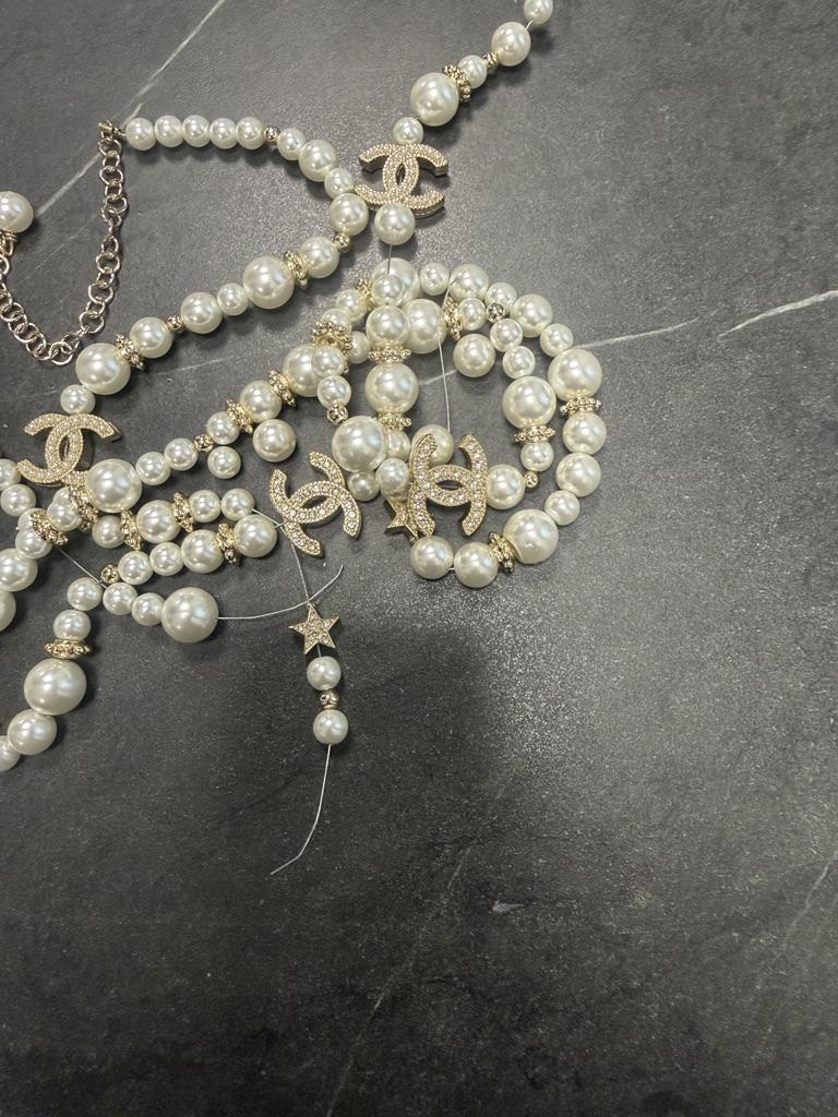 Seiko Women's High-Quality Double C Diamond Star Pearl Sweater Necklace