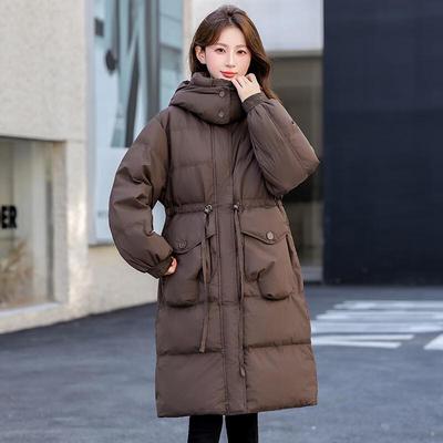 Fashion Thickened Down Jacket Women's Medium and Long 2025 Winter New Hooded Large Pocket Over Knee Warm Jacket