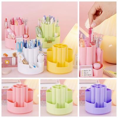 360° Rotary Pen Holder Office Pencil Storage Box Large Capacity School Stationery Desktop Makeup Brush Organizer