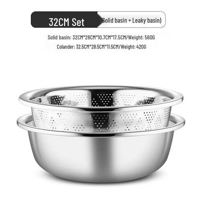 ZISIZ Thickened Stainless Steel Colander & Solid Basin Set
