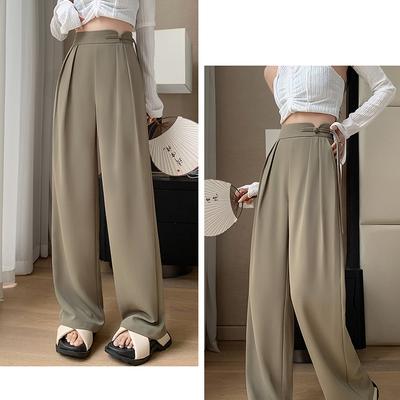 Women Suit Pants High Waist Straight-Leg Wide-Leg OL Commuter Style Casual Trousers with Pockets Office Attire