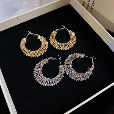 Minimalist Zircon Wire Mesh Round Hoop Earring for Women, Gold Color Ring, Party Jewelry, Unique, Christmas Girl's Circle Earrings