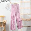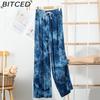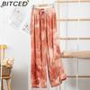 BITCED Tie-Dye Ice Silk Wide-Leg Trousers for Women Summer Lightweight High-Waisted Drape-Effect Colour-Printed Pleated Casual Floor-Length Trousers