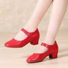 Leather Mid-heel Soft-soled Red Social Dance Shoes Middle-aged and Elderly Non-slip High-heeled Dance Women's Shoes