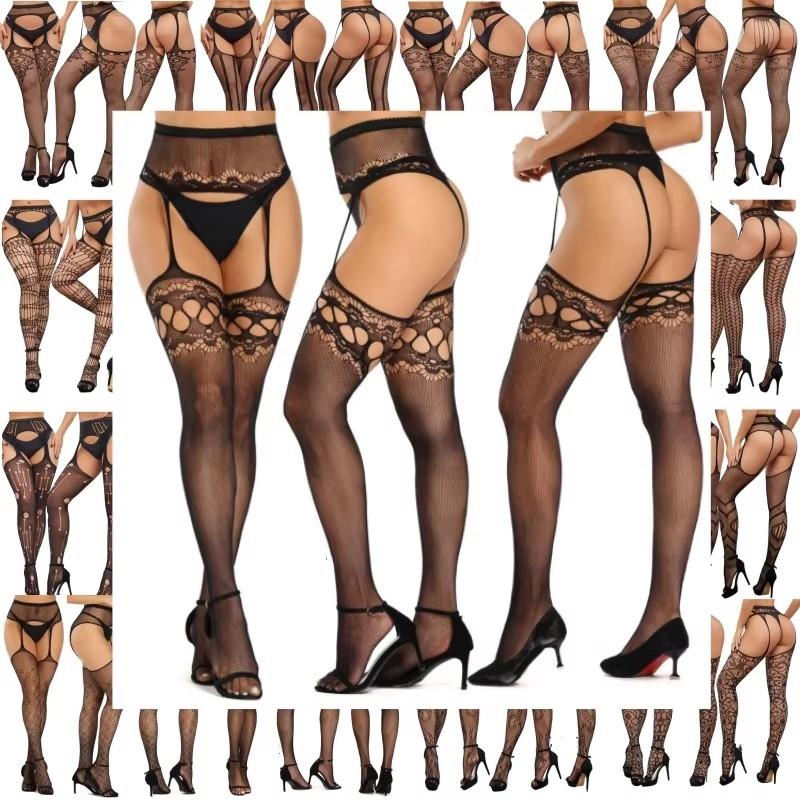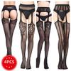 SIMPLEJEWEL 1pcs/4pcs Pantyhose Fishnet Sexy Thigh-High Stockings Tights Suspender Stockings for Women Garter Belt Stocking